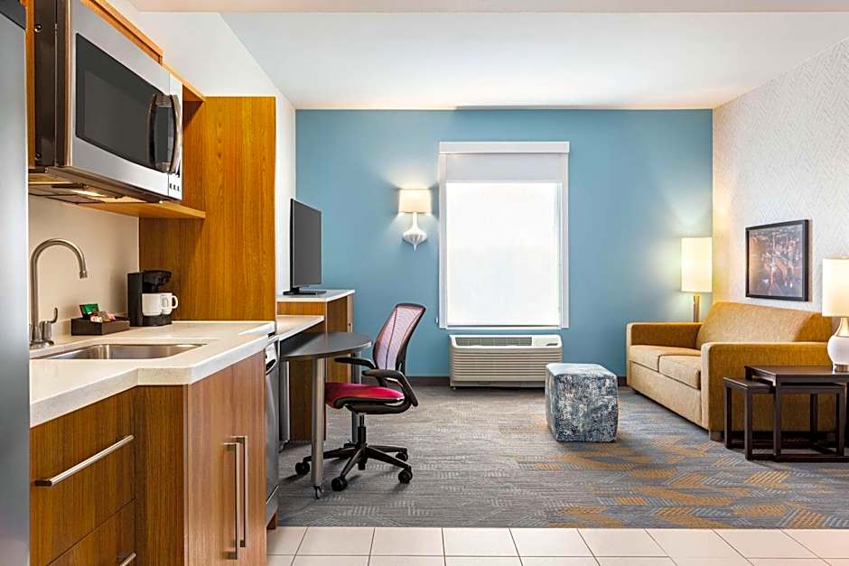 This suite features a kitchenette with a microwave, a dishwasher, a full-size refrigerator, plates and utensils. A flat-screen cable TV and a sofa bed are also provided.